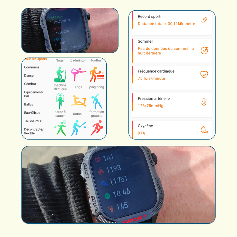 Suivi de Santé Complet : Fréquence cardiaque, sommeil, calories... Maintenez votre forme physique optimale.